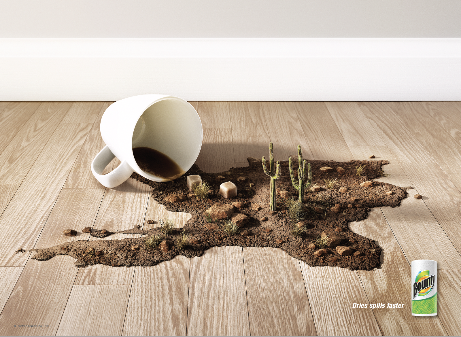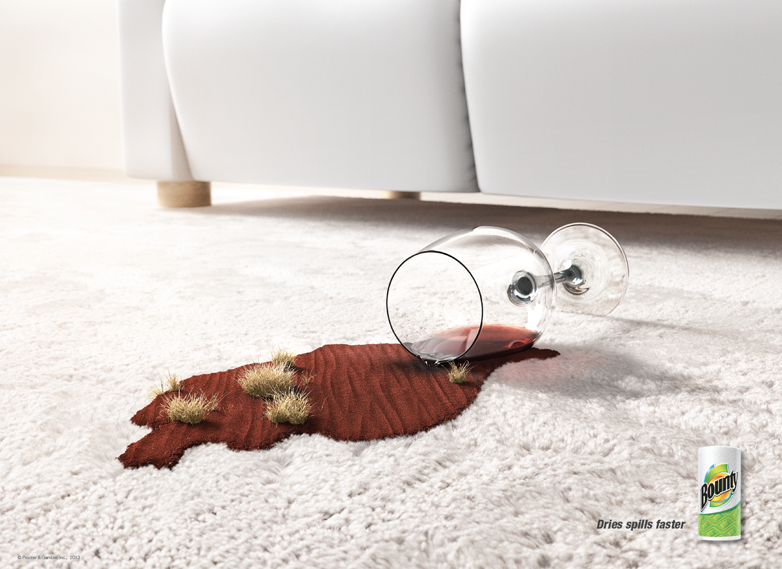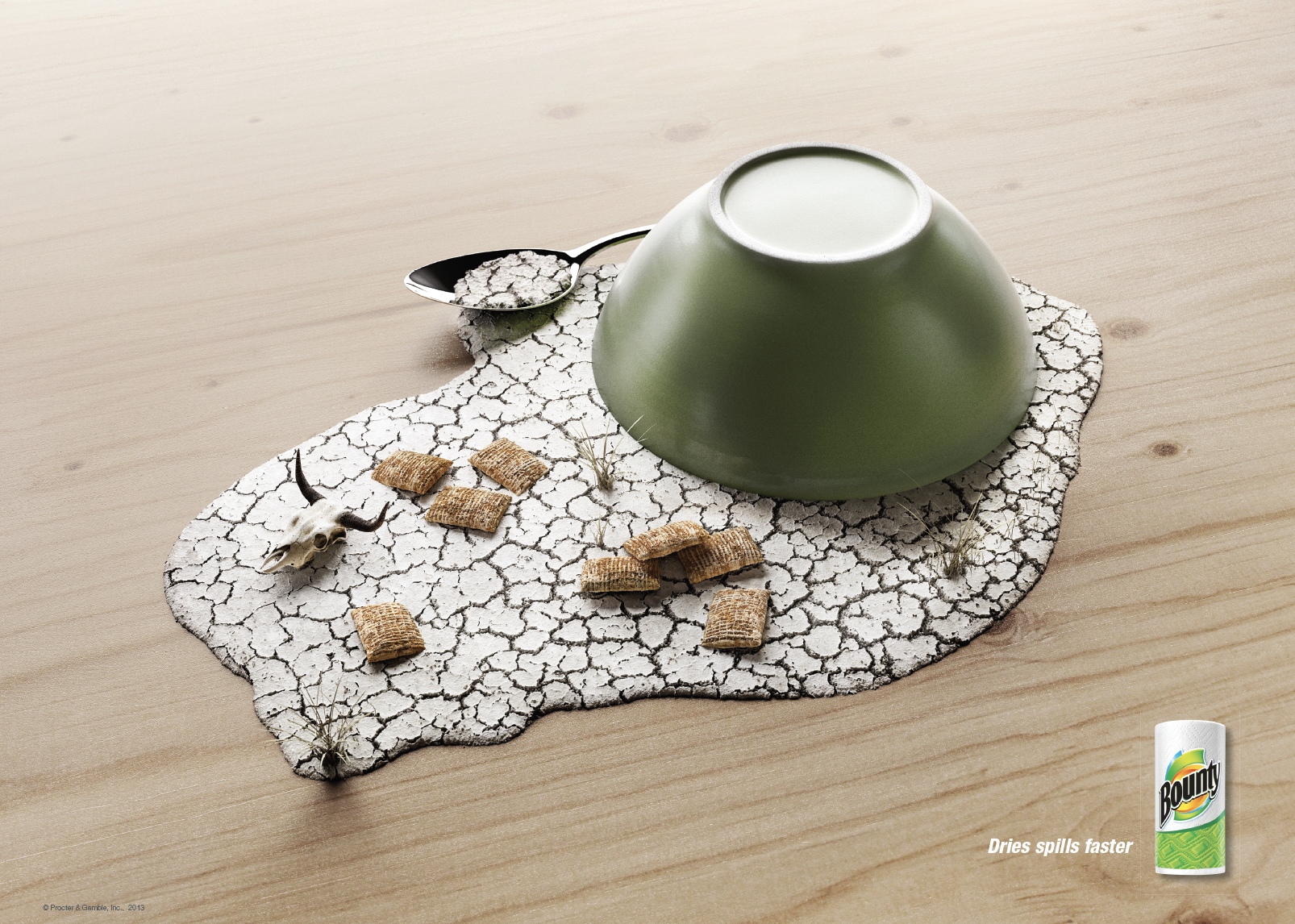 Only Bounty can dry spills instantly while cleaning up with CA, Archive, Graphis Awards, NY Addy's Best In Show, and National Silver.